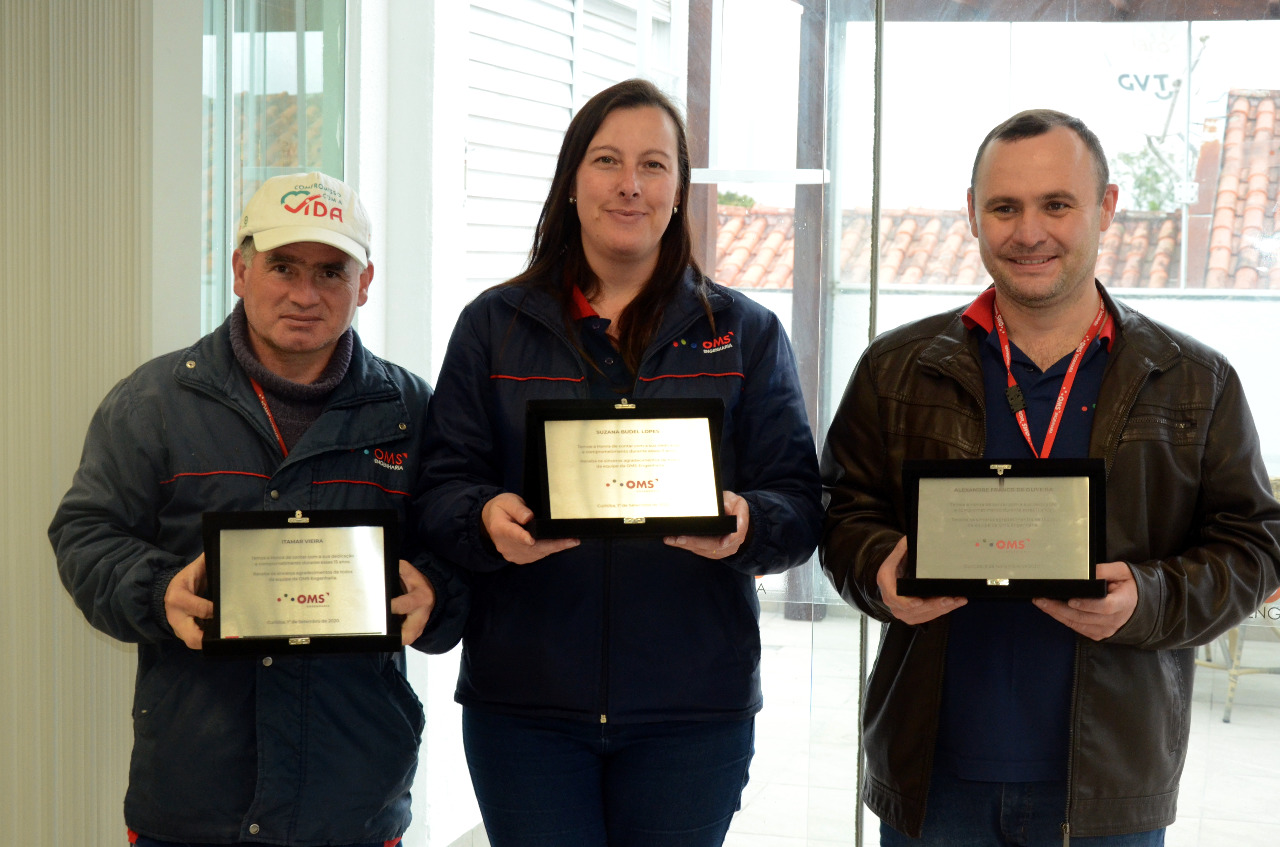 Em uma celebração realizada na sede da empresa, em Curitiba, os três receberam uma placa de menção honrosa, presentes, e muitas palmas. Parabéns Itamar, Suzana e Alexandre! Vocês representam a energia da equipe OMS Engenharia!
